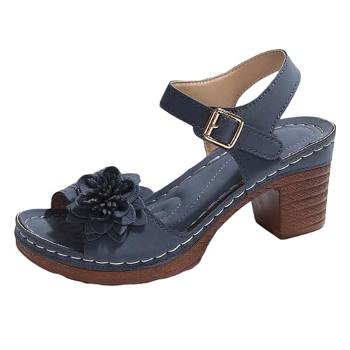 Kelandoom Sandale Confort Femme Chaussures Mules Plates Pour Sandales Strass Pantoufles Avec Soutien De La Voûte Plantaire Basket Noir Orthopedique Cuir Tissu Confortable (Marine,41)