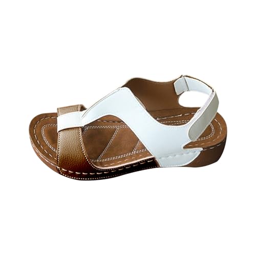 Cocila Sandales Cuir CompenséEs éLastiques à Bout Ouvert Pour Femmes Jolies Enfiler éTé Sandales Femmes Confort Chaussures Pieds Larges Plates Printemps Basket Ouverte Plastique Blanches