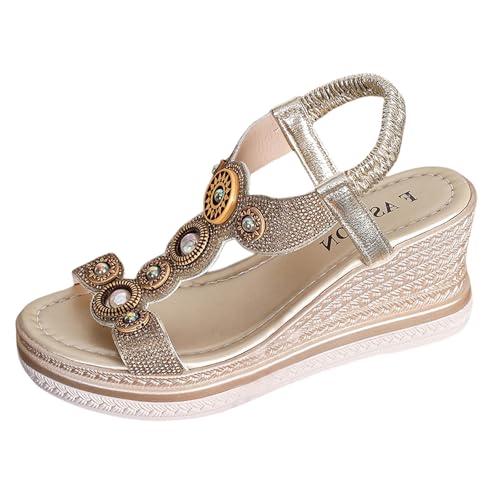 Cocila Sandales Femmes Confortable Pour Style éTé Plage Grande Taille Talons InclinéS DéContractéEs L'éTé La Et Les Sandales Cuir Chaussures Pieds Larges Femmes CompenséEs Dorees Basket Ouverte