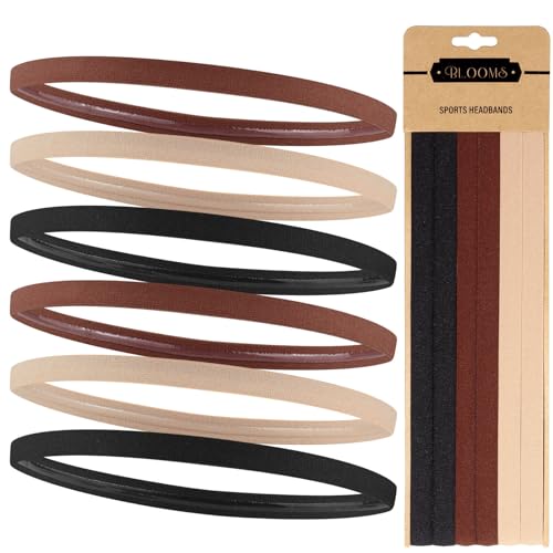 Blooms Lot de 6 Bandeau Cheveux Femme - Elastique Cheveux Homme - Serre Tete Garcon Enfant -Headband Antidérapant Bandeau Sport pour Yoga Football Running Basket Jogging (Noir, Marron, Beige)