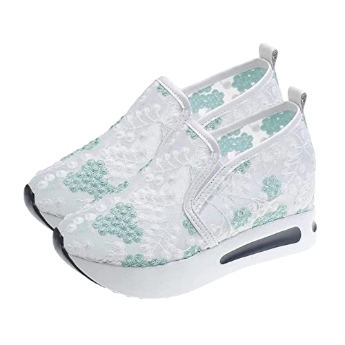 Supatmul Baskets en Maille Transparente à Broderie Florale, Baskets compensées brodées, Marche décontractées Dentelle d'été 2023, Baskets compensées à Plateforme Tendance pour Femmes