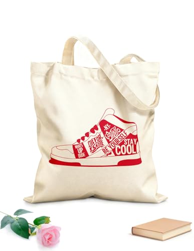 XIARON Sacs en toile imprimés numériquement Baskets style urbain citation ado tissu épais de 340g/m² Utilise comme trousse de maquillage L Rouge carmin