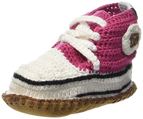 Baobab Schuhe, Baskets pour bébé bio crochetées à la main avec semelle antidérapante en cuir sauvage, 21-24 mois (rose4)
