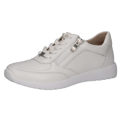 CAPRICE Baskets Basses Femme en Cuir avec Fermeture éclair, Blanc (White Deer), 37 EU