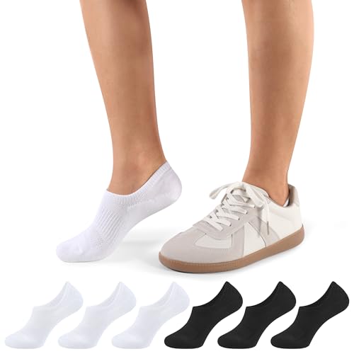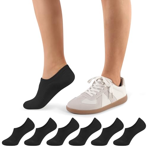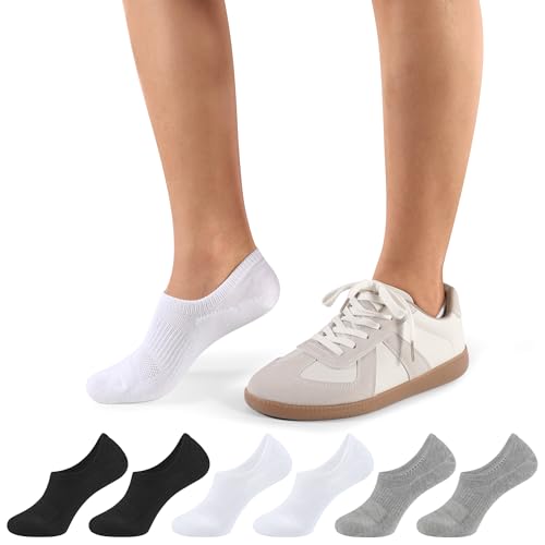 CLOSEMATE 6 Paires Chaussettes Invisibles Femme Socquettes 39-42 35-38 de Sport en Coton Éponge Antidérapantes Élastiques Respirantes Épaisses pour Sneakers Baskets Loafers en Blanc Noir Gris Beige