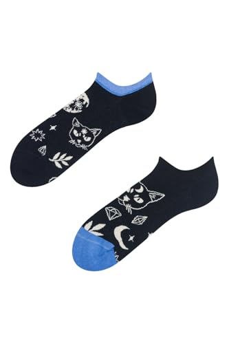 Dedoles Chaussettes Unisexe Homme Femme & Enfants beaucoup designs amusants gauche droite différent, couleur: Noir, motif: Chat et lune (socquettes pour baskets), taille: 35-38