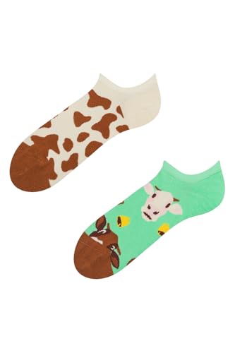 Dedoles Chaussettes Unisexe Homme Femme & Enfants beaucoup designs amusants gauche droite différent, couleur: Turquoise, motif: Vache et cloche (socquettes pour baskets), taille: 39-42