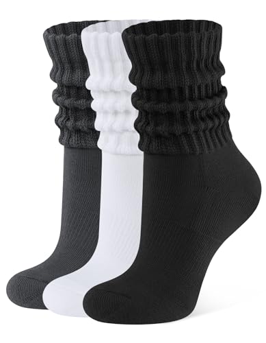 CLOSEMATE 3 Paires Chaussettes Femme 35-38 39-42 Mi-mollet en Coton Souples Chaudes pour Baskets Bottes en Blanc Noir Gris