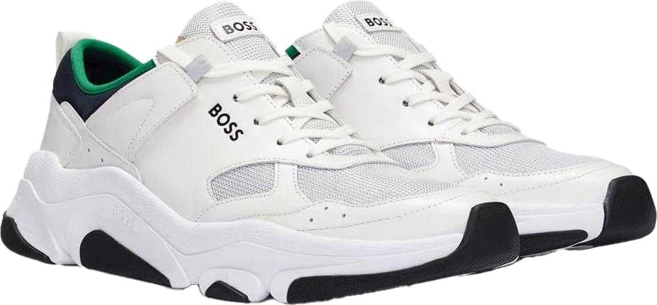Hugo Boss - Baskets "Asher" pour homme, cuir GT5178 (39,5 EU) (Blanc/Vert)