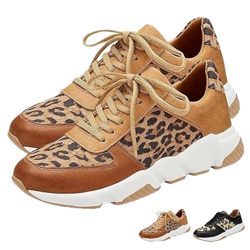 Baskets léopard pour femme, baskets rétro à lacets avec imprimé guépard, chaussures orthopédiques confortables à plateforme épaisse, Motif léopard Marron, 37.5 EU