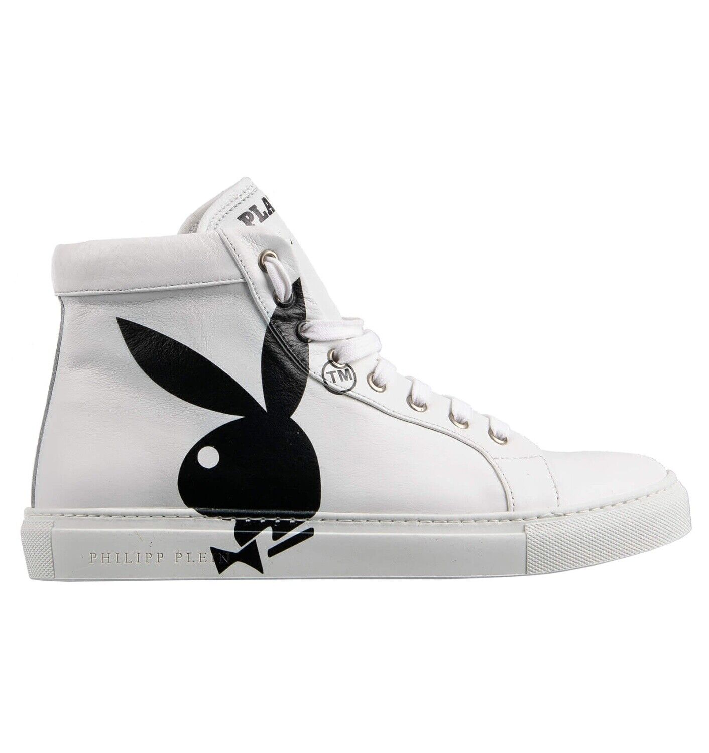 Philipp Plein X Playboy High-Top Cuir Lapin Logo Tête de Mort Baskets Blanc Noir