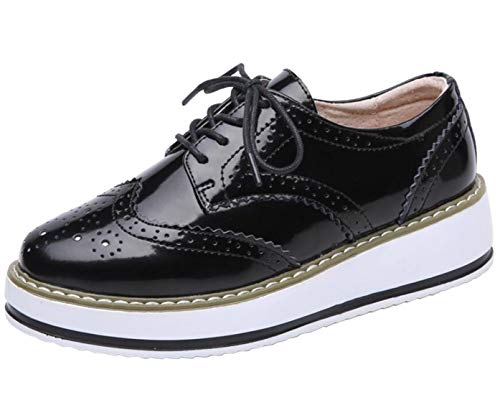 DADAWEN Brogues Femmes /Chaussures de Ville à Lacets Derbies Baskets Cuir Plateforme Noir 38