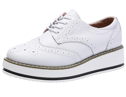 DADAWEN Brogues Femmes /Chaussures de Ville à Lacets Derbies Baskets Cuir Plateforme Blanc(B) 42