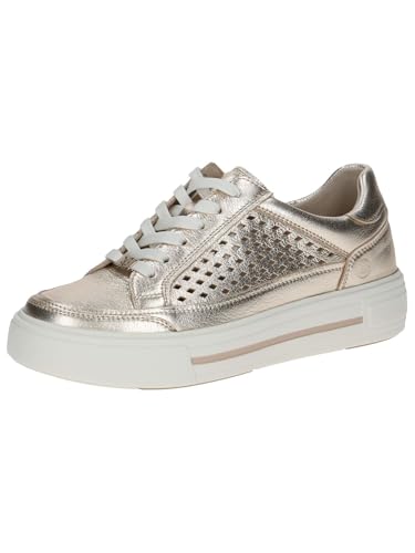 CAPRICE Baskets à Plateforme Femme en Cuir à Motif perforé, Métallique (Platin Metal.), 38,5 EU