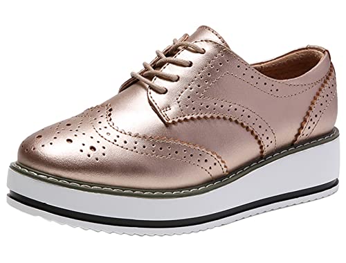 DADAWEN Brogues Femmes /Chaussures de Ville à Lacets Derbies Baskets Cuir Plateforme Or 42