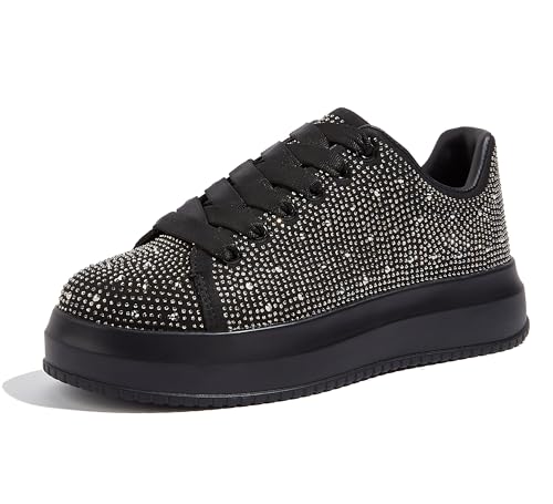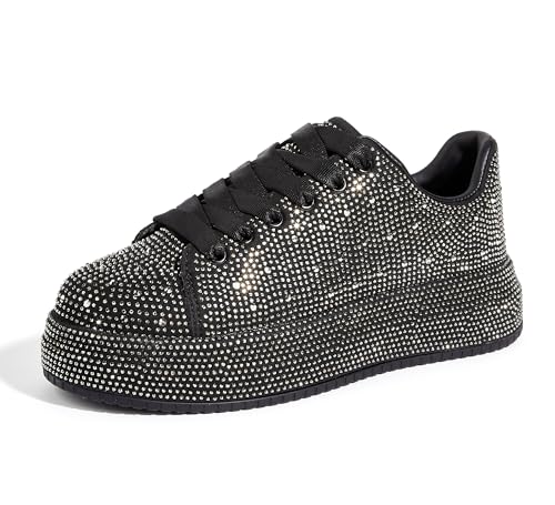 LUCKY STEP Baskets à Plateforme Scintillante pour Femme,fête de Mariage et Marche (Noir avec Strass, 9US-40EU-7UK)