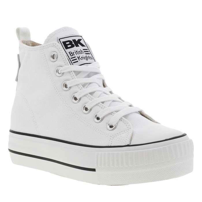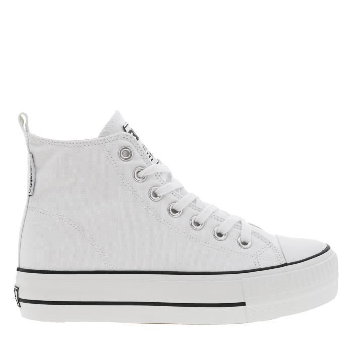 Baskets montantes en toile blanche à doublure écrue et semelle plateforme