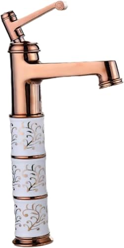 Robinet D’évier Robinets Or Bassin en Cuivre Complet Robinet De Lavabo Chaud Et Froid Lavabo Domestique Bassin De Lavage Surélevé Au-Dessus du Robinet De Lavabo, Rose Gold 1 Section