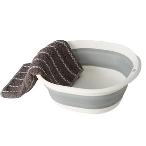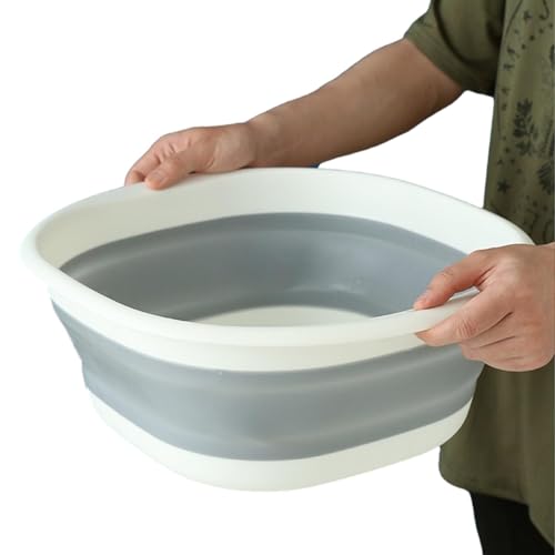 Joyivike Seau De Vadrouille Portable Pliable, Seau À Eau Rectangulaire, Multifonction Bassine À Vaisselle Pliable, Panier À Linge Pliable, Bac De Lavage Pliable pour Le Nettoyage La Maison,Blanc Gris