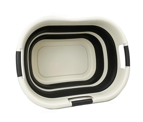 FISHTEC - Panier à Linge Pliable 27 L avec 2 Poignées - Cuve Rétractable Multifonction - Boîte de Rangement ou Bassine de Nettoyage Compacte - Gain de Place 60 x 39 cm - Robuste et Pratique