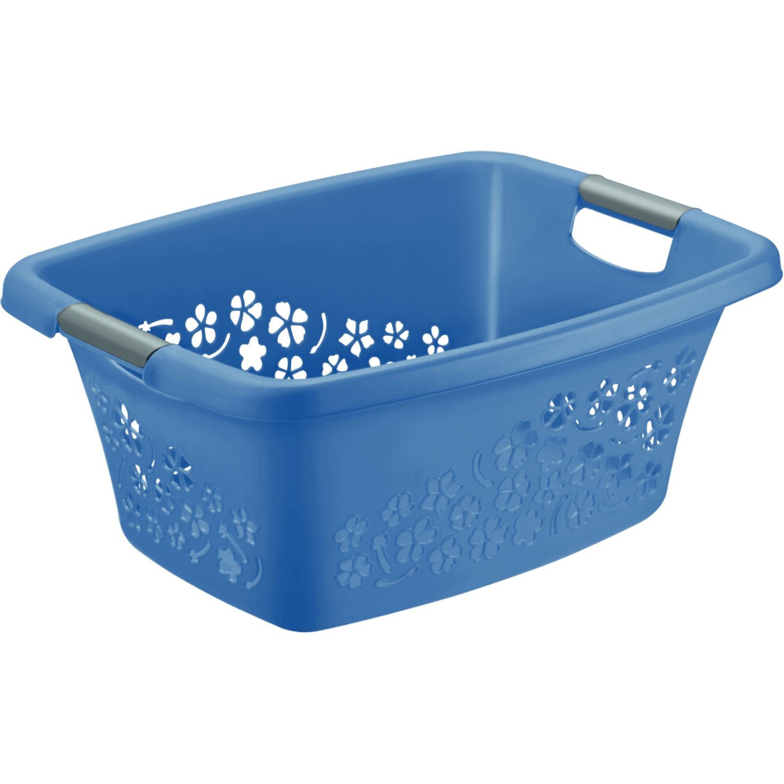 Panier à Linge Bassine/Panier à Waschkorb " Fleurs " 25 L Bleu Avec Poignées