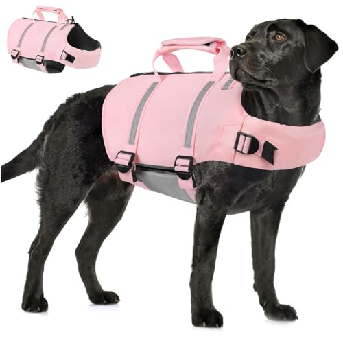 Gilet de sauvetage pour chiens, gilet de sauvetage haute visibilité pour chien, bateau, maillot de bain avec poignées pour toutes les races, chiens de petite et moyenne taille, pour l'extérieur, la