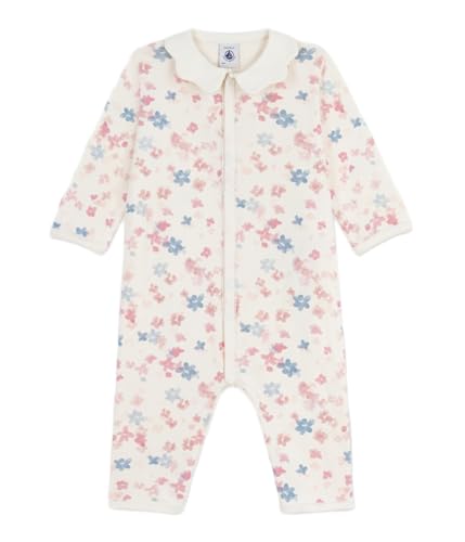 Petit Bateau Pyjama Dors Bien Chaud Bébé Fille, Blanc Marshmallow/Rouge Terkuit, 0-3 Mois