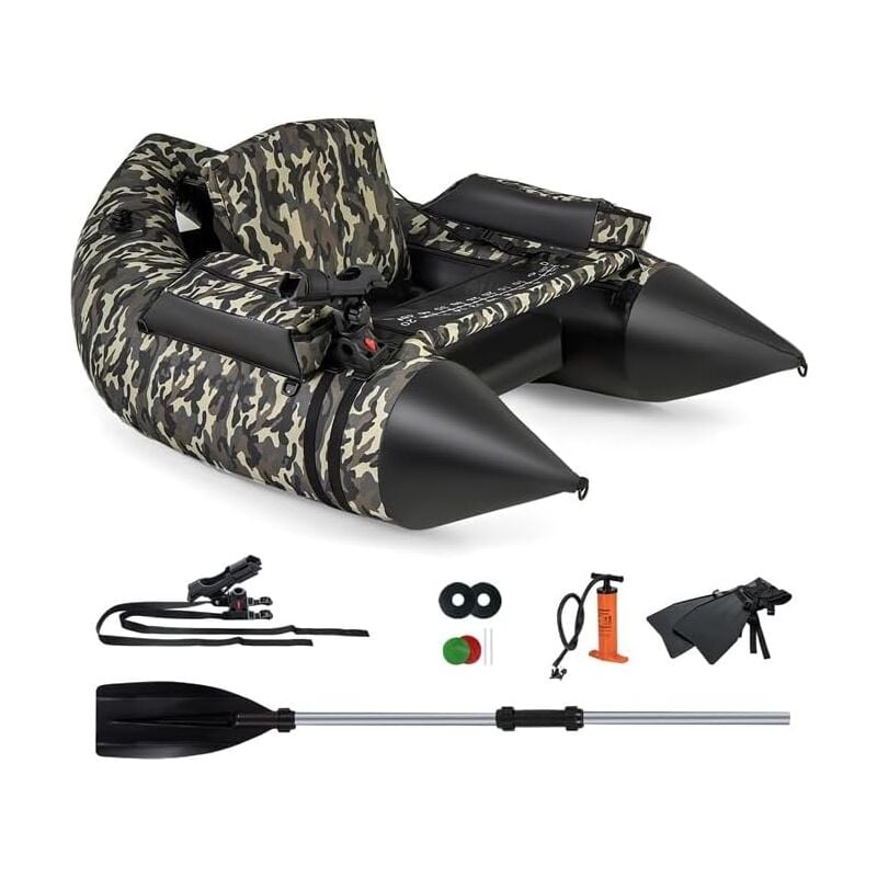 FANTASK Bateau pneumatique, Bateau de pêche avec Pompe, pagaie, Sangles, Bellyboat Pédalo pour Adultes, capacité de Charge de 150 kg, 135 x 109 x 54cm (Vert)