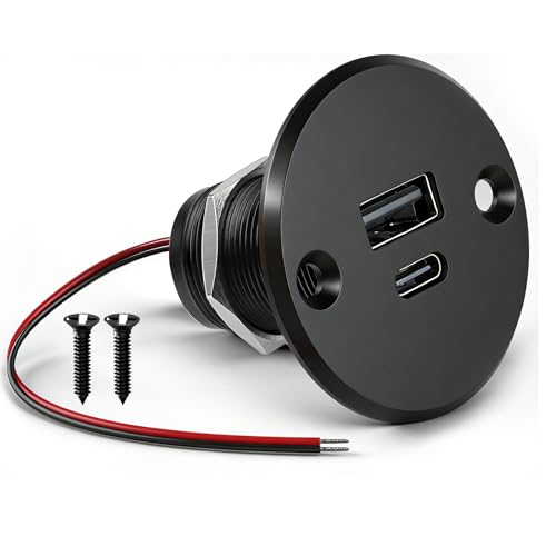 CamperXlite Aluminium 12VCC Prise de Chargeur USB C de Caravane, 24W Double Charge Rapide QC 3.0 et PD 3.0 Adaptateur pour Camping Car, Remorque, Camion, Bateau (1 pièce)