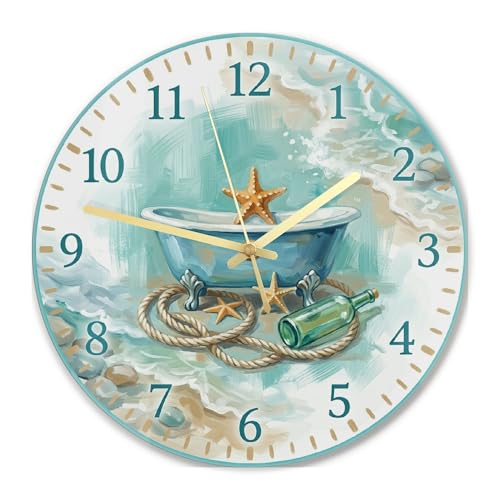 Horloge murale en forme de bateau pour salle de bain, étoile de mer nautique côtière, bouteille d'été, turquoise, horloge murale silencieuse pour cuisine, salle à manger, appartement, dortoir