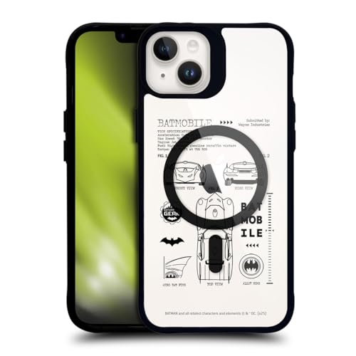 Head Case Designs Officielle Batman DC Comics Batmobile Logos et Comics Coque Pare-Chocs Noire Antichoc [Niveau Militaire] Compatible avec iPhone 14 Plus et Compatible avec MagSafe