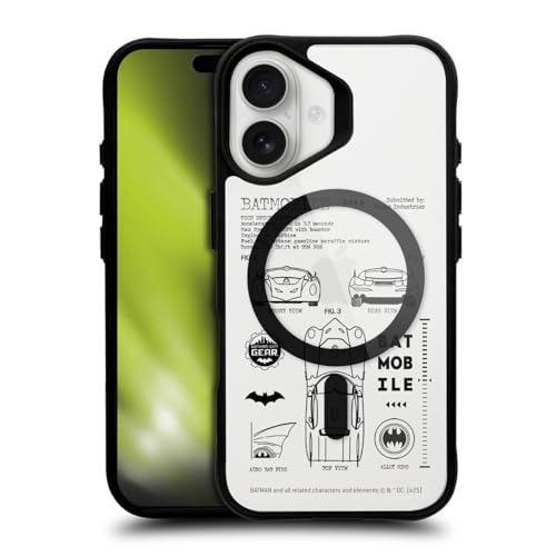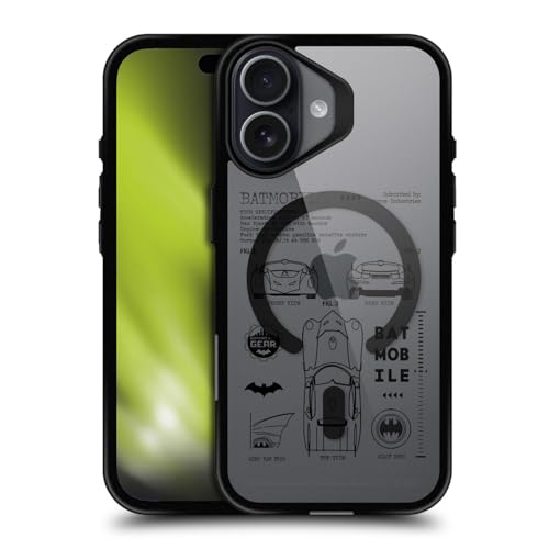 Head Case Designs Officielle Batman DC Comics Batmobile Logos et Comics Coque Pare-Chocs Noire Antichoc [Niveau Militaire] Compatible avec Apple iPhone 16 et Compatible avec MagSafe