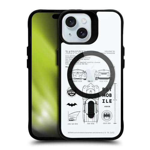 Head Case Designs Officielle Batman DC Comics Batmobile Logos et Comics Coque Pare-Chocs Noire Antichoc [Niveau Militaire] Compatible avec Apple iPhone 15 Plus et Compatible avec MagSafe