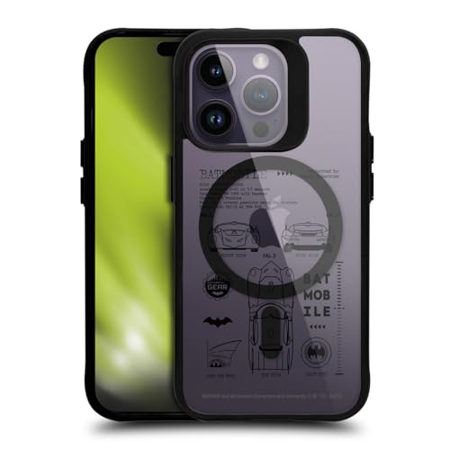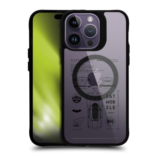 Head Case Designs Officielle Batman DC Comics Batmobile Logos et Comics Coque Pare-Chocs Noire Antichoc [Niveau Militaire] Compatible avec iPhone 14 Pro et Compatible avec MagSafe
