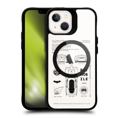 Head Case Designs Officielle Batman DC Comics Batmobile Logos et Comics Coque Pare-Chocs Noire Antichoc [Niveau Militaire] Compatible avec iPhone 13 et Compatible avec MagSafe