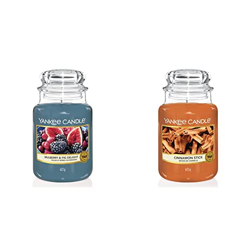 Yankee Candle bougie parfumée Figues et mûres gourmandes ; Format jarre & bougie parfumée Bâton de cannelle ; Format jarre ; Bougie longue durée jusqu’à 150 heures de combustion