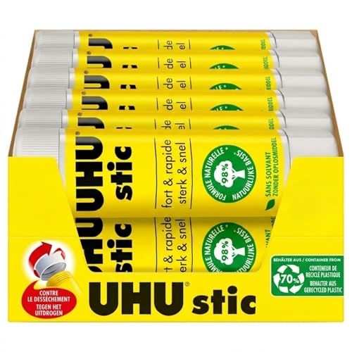 UHU Stic - Bâton de Colle Sans Solvants - Colle Enfant, Loisirs Créatifs, Bureau, Maison, École - Blanche - Fournitures de Bureau - Lot de 12 Stics de 21 g