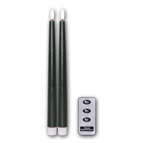 Lot de 2 bougies bâton LED FLAMME SLIM avec télécommande, hauteur 28,5cm, diamètre 2,1cm, coloris vert foncé, fonction pile & timer