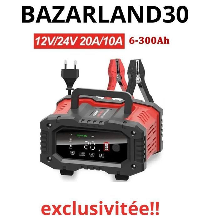 Chargeur de batterie - BAZARLAND30 - Portable - 12V/24V - 7 étapes de charge - Protection contre surcharge