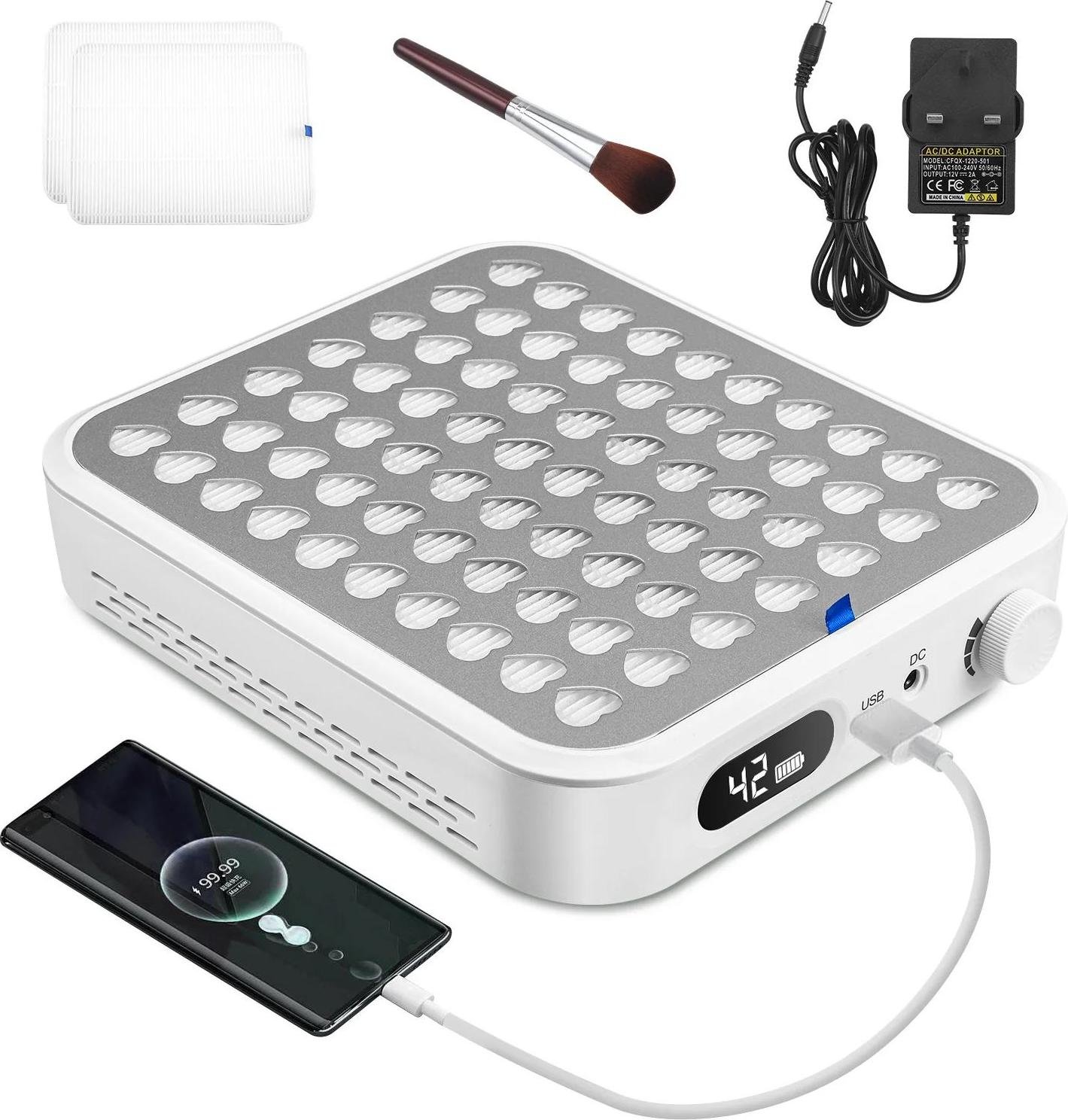Aspirateur à poussière pour ongles - Aspirateur pour manucure - Moteur sans balais 56 W - Sans fil - Batterie rechargeable - 2 filtres - UE 220 V - Blanc