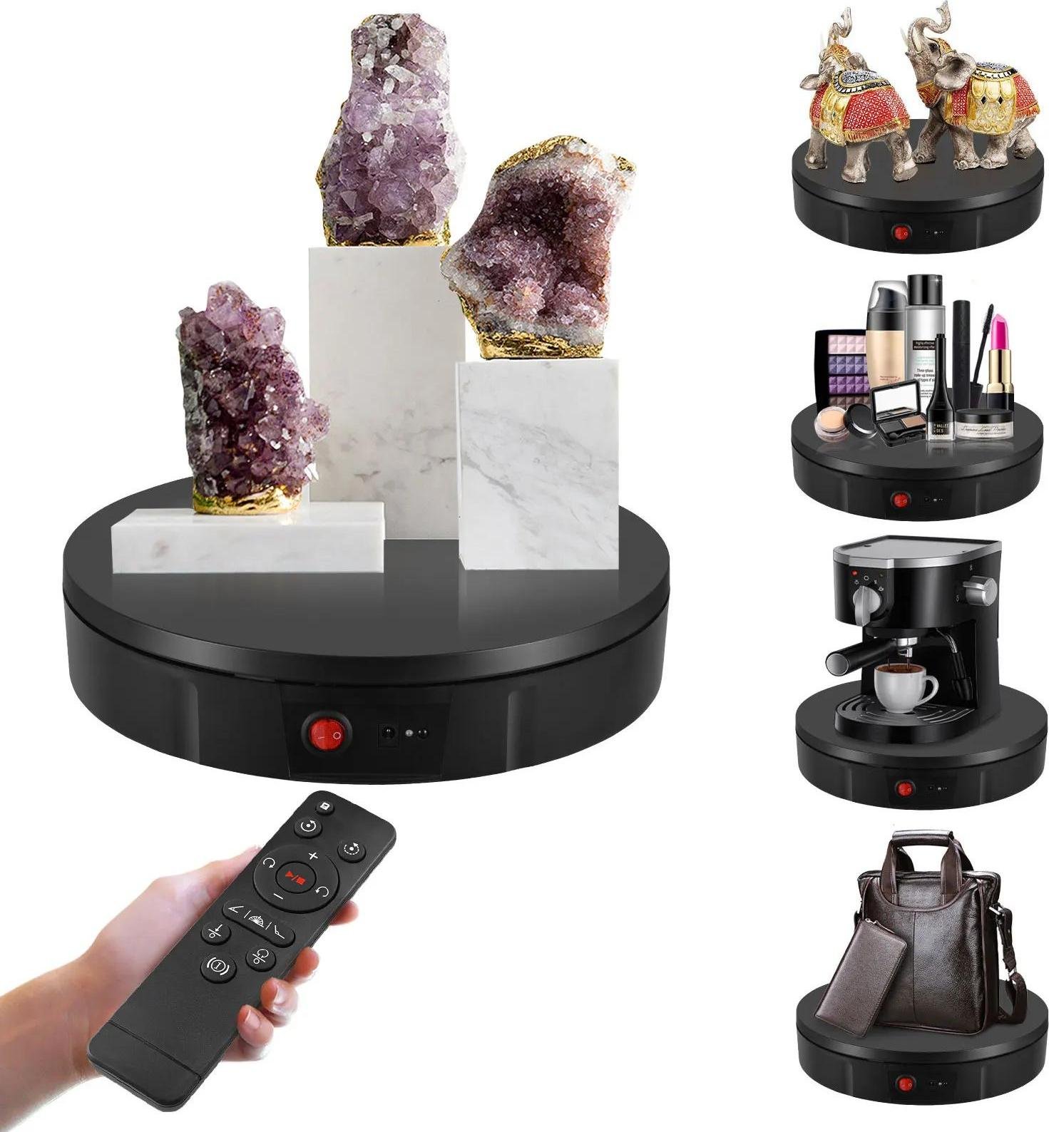 Plateau tournant électrique - Présentoir à bijoux - Capacité de charge 100 kg - Diamètre 30 cm - Rotation à 360° - Batterie rechargeable - Prise UE 220 V - Blanc