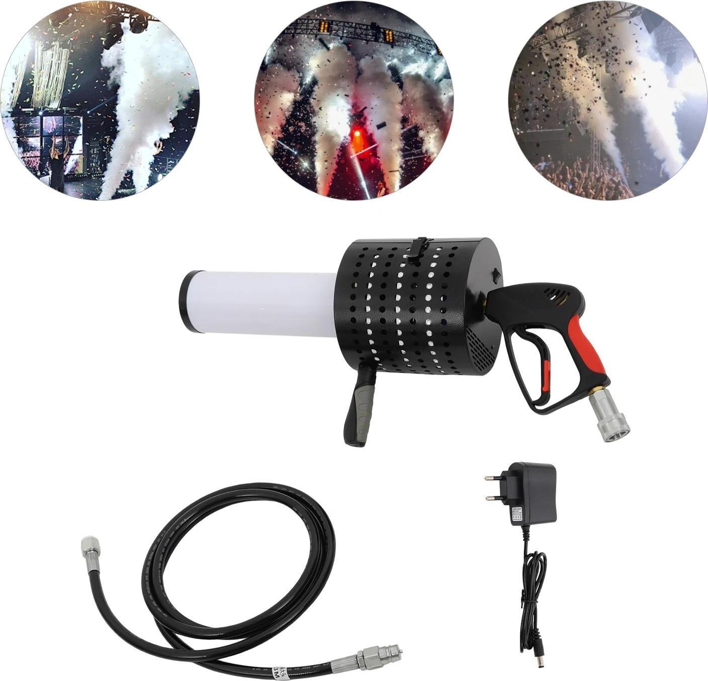 Pistolet à CO LED - Jet de CO portable pour scène - 20 W - Batterie rechargeable - Batterie incluse - Prise UE 220 V - Autonome - Noir