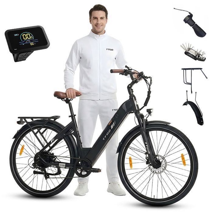 2026 TTGO C3 PRO Vélo Électrique 28 - Moteur Bafang 250W -Batterie 36V 20Ah - 25 km/h Max - 120KM Max - Capteur de couple - Noir
