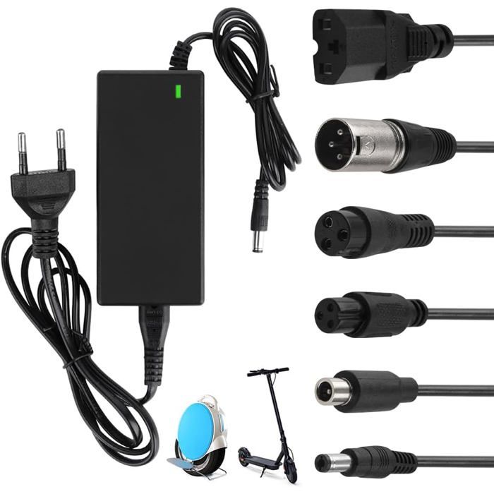 Chargeur Trotinette Electrique: 42V 2A Chargeur Hoverboard avec 6 Connecteurs, Trottinette Électrique Batterie 36V pour Scooter, Hoverboard, Monocycle, Planche à Dérive