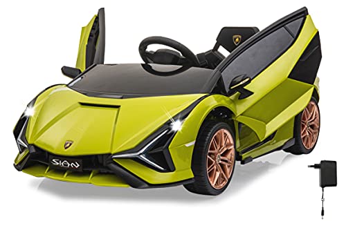 JAMARA 460638 Ride-on Lamborghini Sián FKP 37 12 V à partir de 3 ans Démarrage progressif 2 vitesses Bluetooth LED son moteur Puissant moteur/batterie 4,5 Ah Indicateur de tension de la batterie Portes battantes Vert