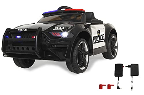 Ride-on US Police Car 12 V – à partir de 3J, Microphone, sirène, Son Moteur, Moteur Puissant/Batterie 4,5 Ah, Amortisseur Avant, Coffre, indicateur de Tension de la Batterie, phares LED