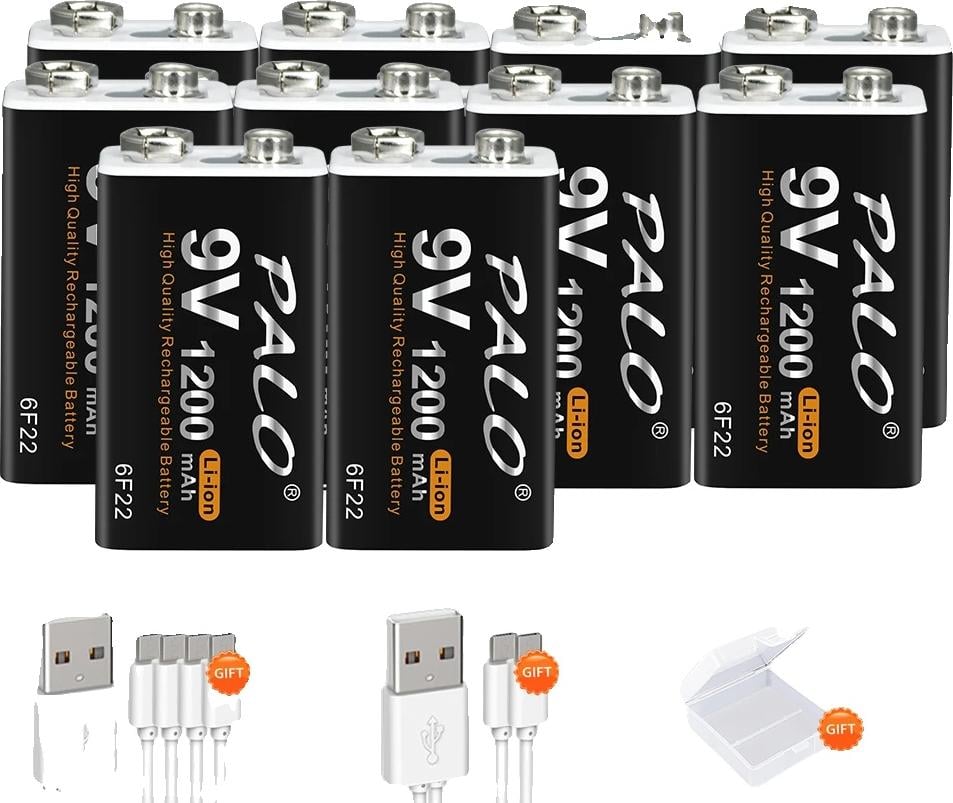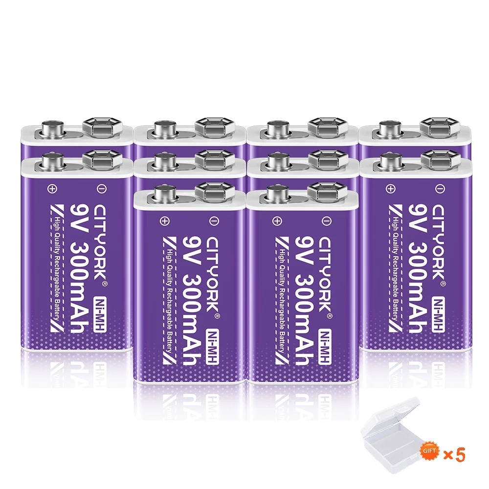 10, 9V (6LR61/6F22), Batteries rechargeables