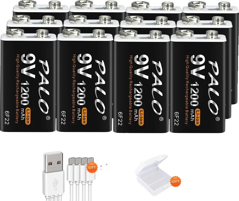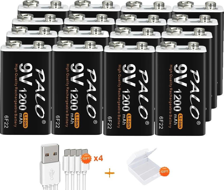 20, Lithium, 9V (6LR61/6F22), Batteries rechargeables