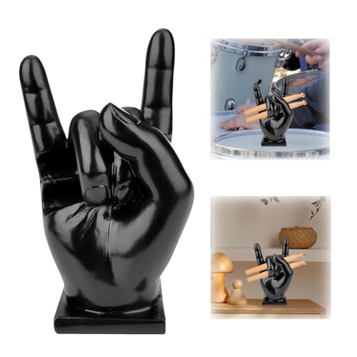 LANZLC Support de Baguette, Main Créative de Rock, Décoration, Accessoire de Batterie, Support de Baguette Créatif, Pose Baguette Batterie Présentoir, Cadeau pour Batteur, Résine, Noir