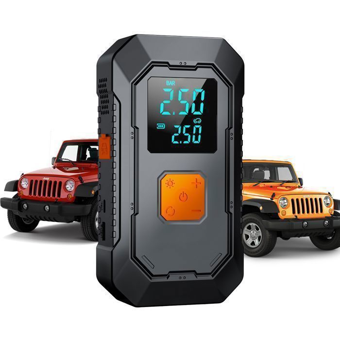 150PSI Gonfleur Pneus Voiture6000mAh -12V Booster Batterie Voiture 1000A-Démarreur de Voiture avec Compresseur à Air